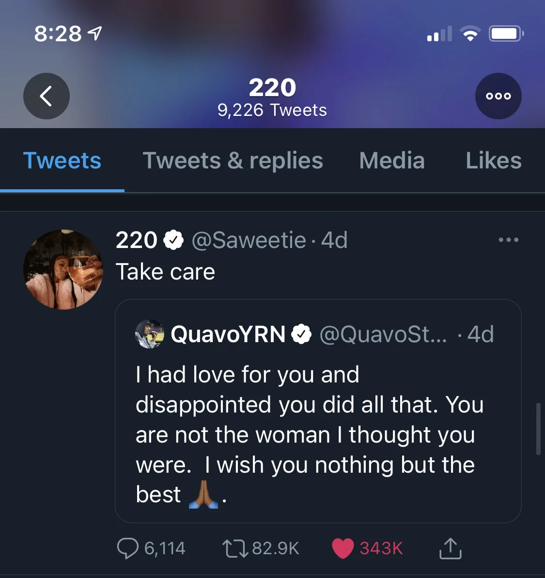 Saweetie did not completely slander Quavo, but she made it sound like she was done dirty and was very pleased to move on. The confidence of this woman is unmatched, and when feelings are involved, this has got to sting. However, Quavo surprised me when he responded basically saying that Saweetie was wack for making her statement. Though he wished her the best, it was clearly very salty. Quavo stated: